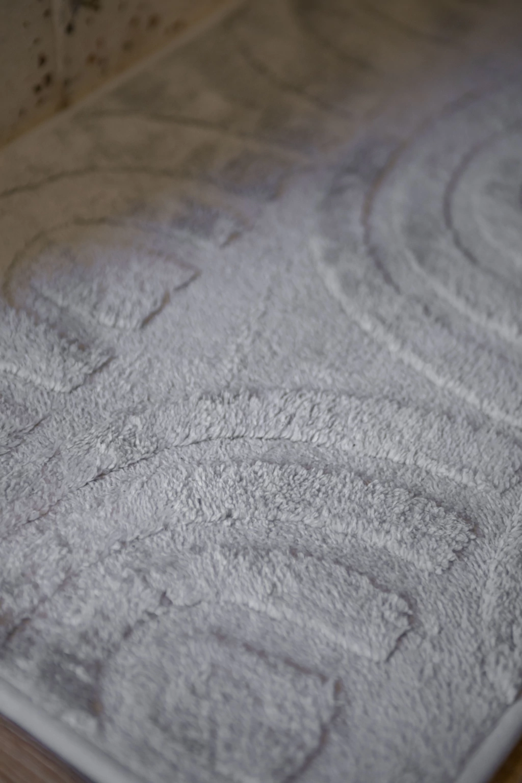 Alfombra gris ideal para bano. Cuenta con base antideslizante y un diseño de rombos que combina estilo y practicidad, perfecta para darle un toque sofisticado y seguro a tu sala, dormitorio o hall de entrada.