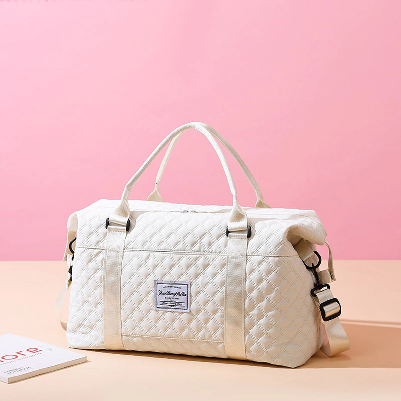 Bolso grande para viajes, impermeable, liviano y plegableCon correaMedidas: 47 cm de largo x 18 cm de ancho x 29 cm de altoColores: Blanco, negro, celeste, lila y rosa