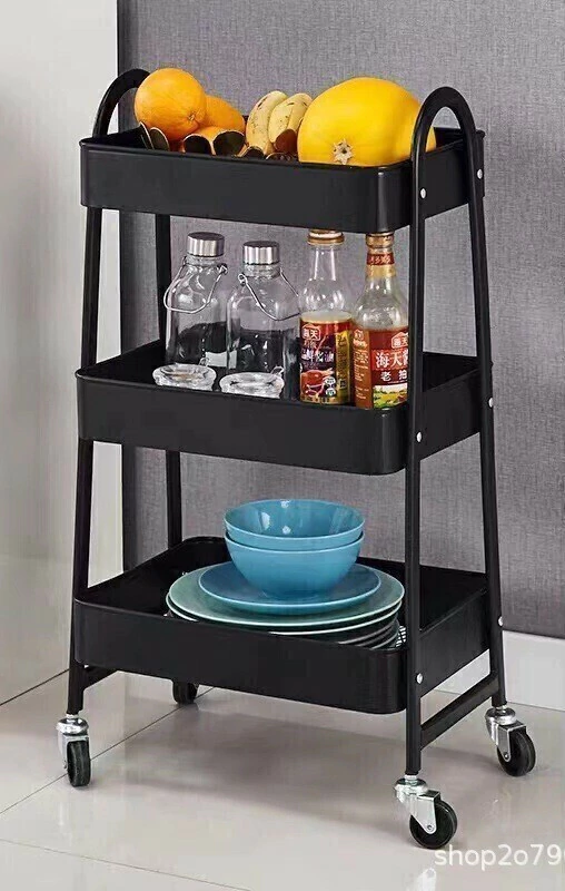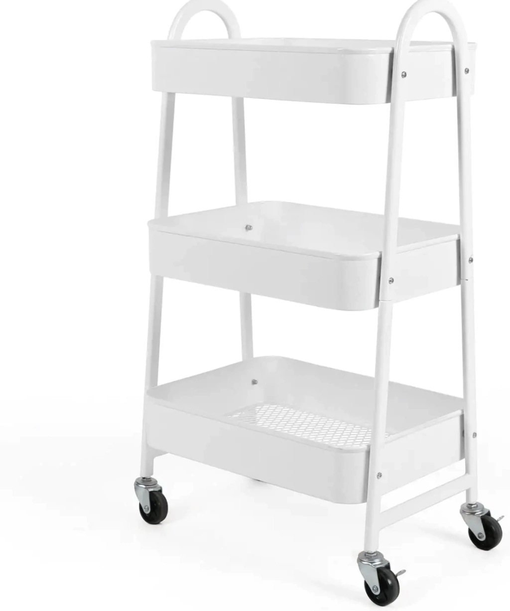 Especificaciones:Medidas: 85 cm alto x 45 cm ancho x 32 cm profundidadMovible: 4 ruedas hacen que el carro sea fácil de reubicarMaterial: Metal y plásticoPisos / Niveles: 3Viene desarmado en caja cerrada con instrucciones y piezas para armar.