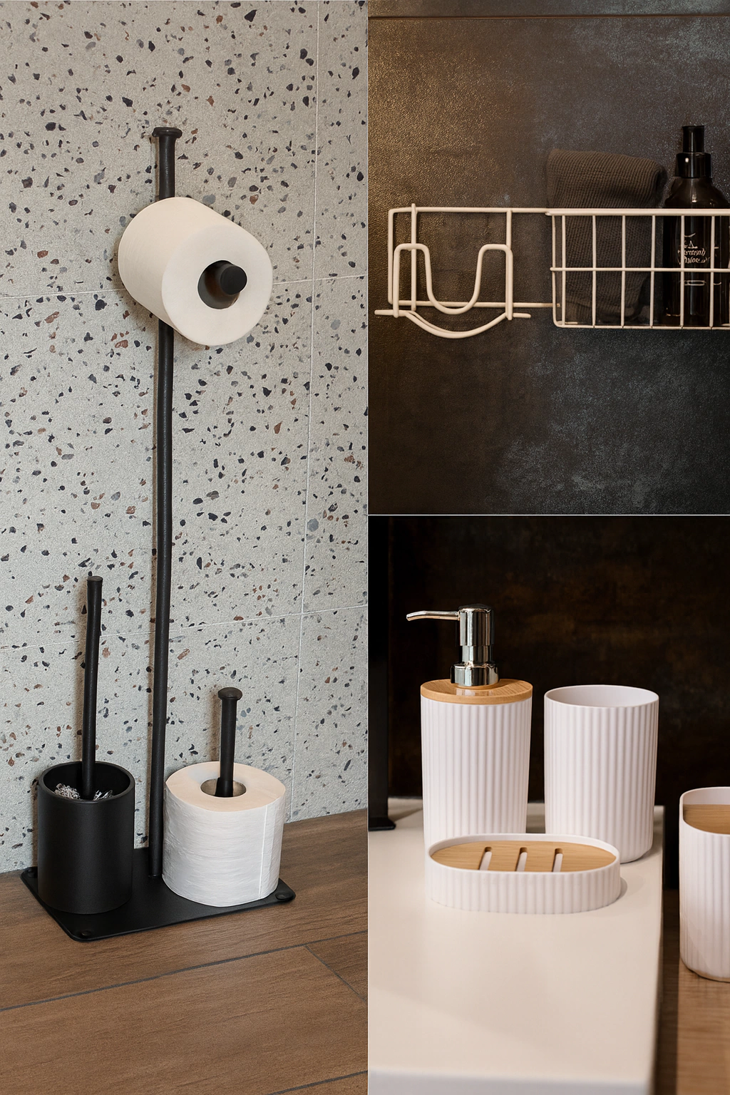 Portarollo de Pie para Papel Higienico + Escobilla Grande