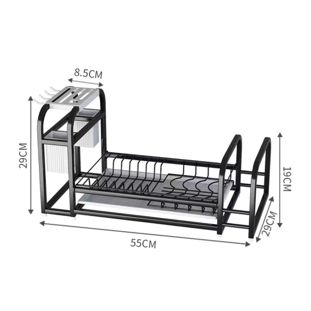 Caracteristicas: Material: Acero Inoxidable Medidas: 55cm largo x 29cm ancho x 29cm altura Color: Negro Incluye portatablas, cubiertero y espacio para cuchillos grandes Incluye bandeja de plastico para la parte inferior y que no gotee el agua