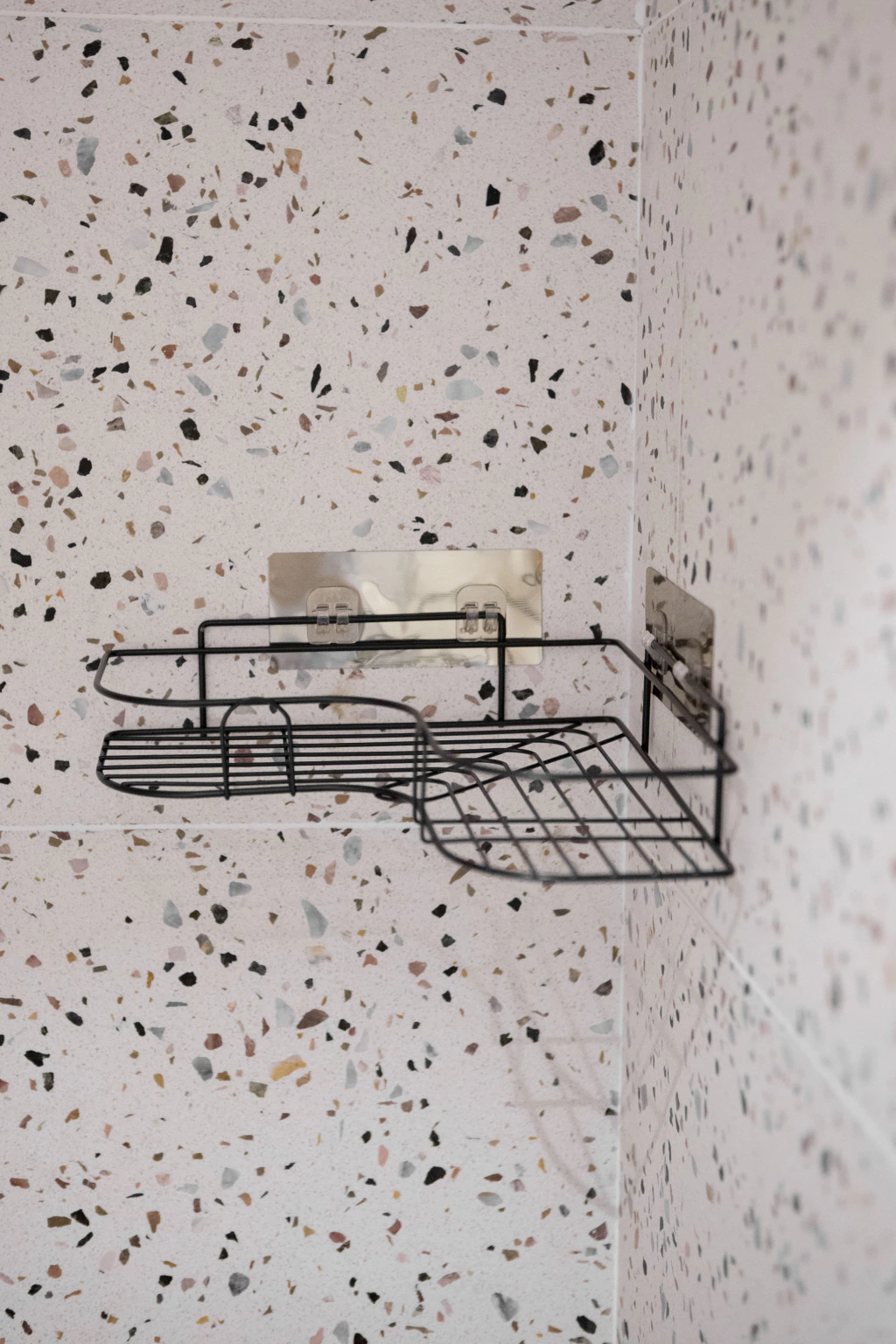 Caracteristicas: - Material: Hierro - Medidas: 26 cm ancho x 26 cm profundidad x 4,5 cm altura - Color: Negro - Viene con ganchos adhesivos - Peso: 300 g aproximadamente - Es resistente al agua