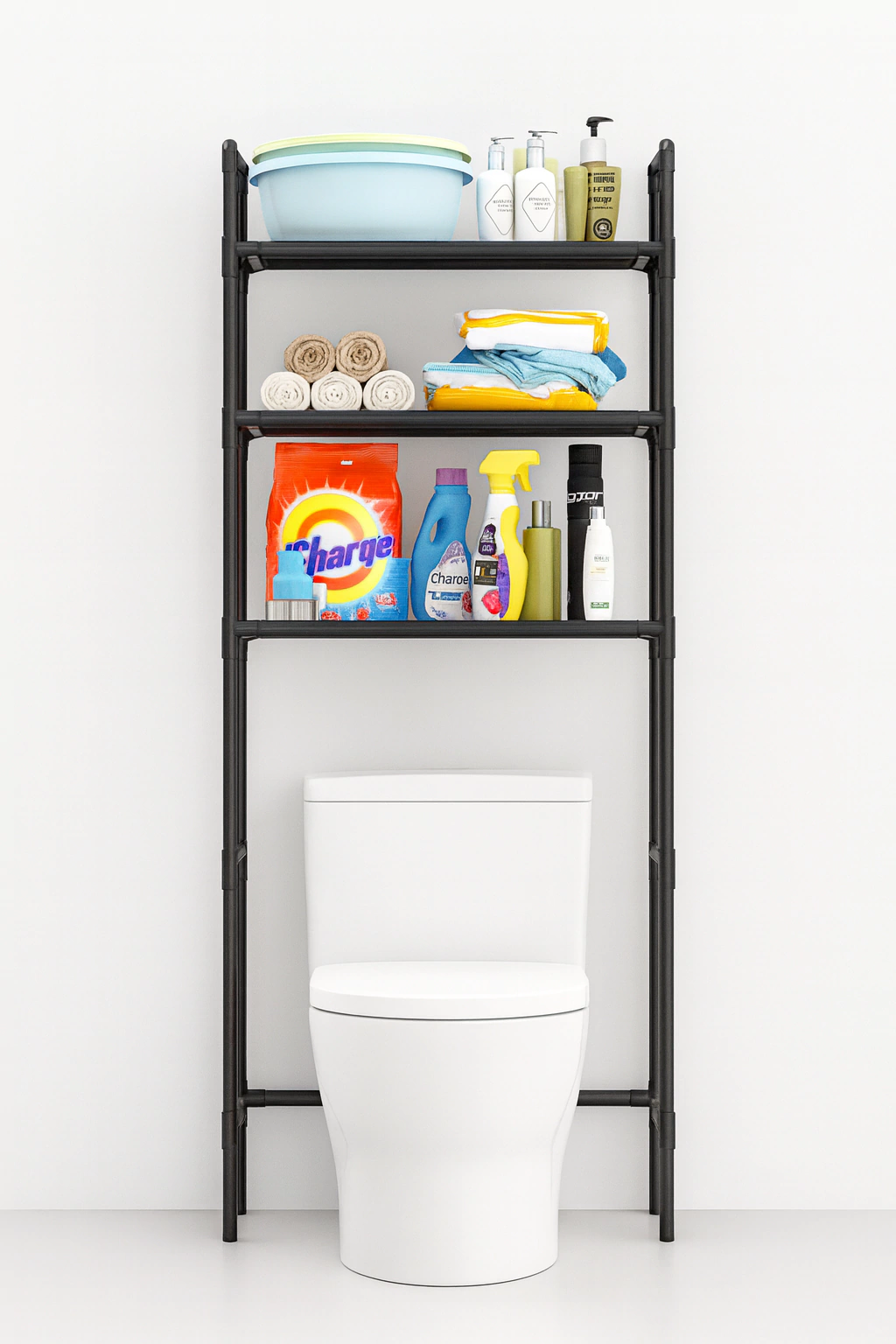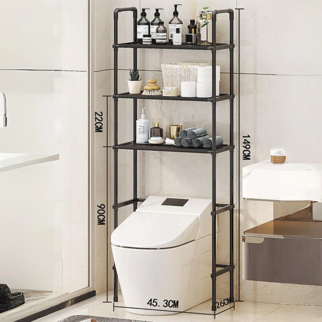 Caracteristicas del producto: Material: Plastico + Acero imoxidable Medidas: 47 cm ancho x 25 cm profundidad x 155 cm altura Color: Negro Cantidad de estantes / Niveles: 3
