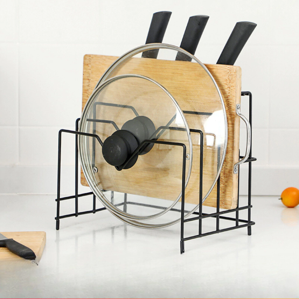 Caracteristicas del producto: Material: Acero inoxidable Medidas: 25,5cm ancho x 18,5cm profundidad x 22cm altura Colores: Negro / Blanco Incluye portacuchillos Ideal para guardar tablas, tapas o sartenes!
