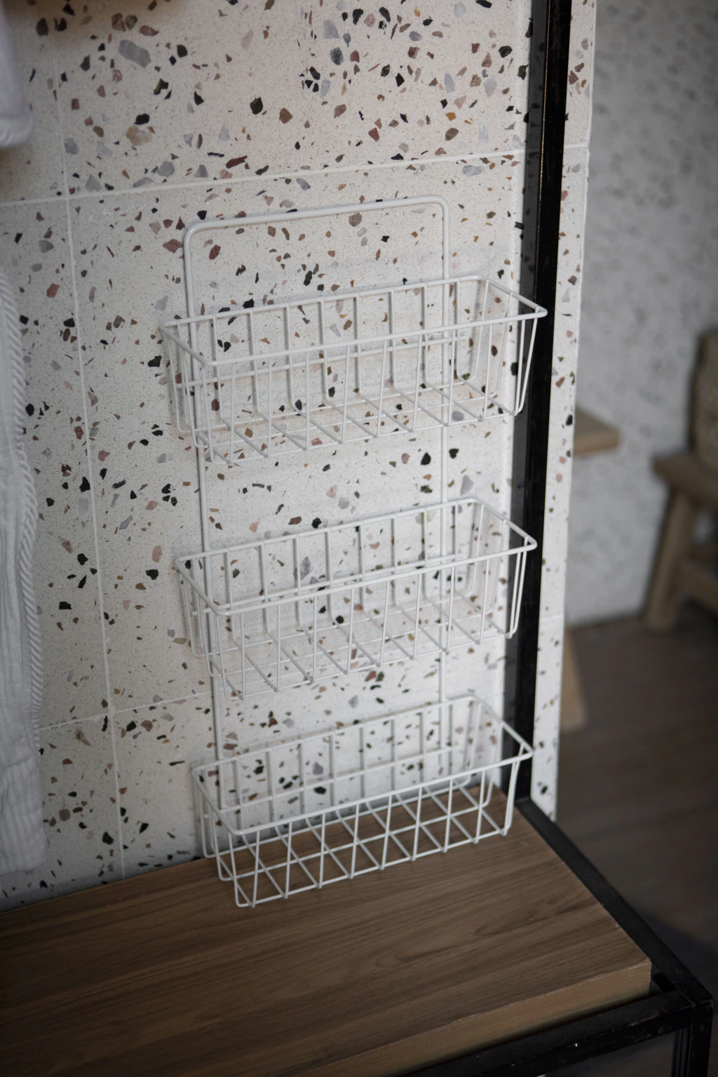 Caracteristicas del producto: Medidas: 25,5cm ancho x 10cm profundidad x 52 cm altura Material: Hierro Colores: Blanco / Negro viene con autoadhesivo resistente 3 niveles Ideal para ordenar tu living, cocina o baño!