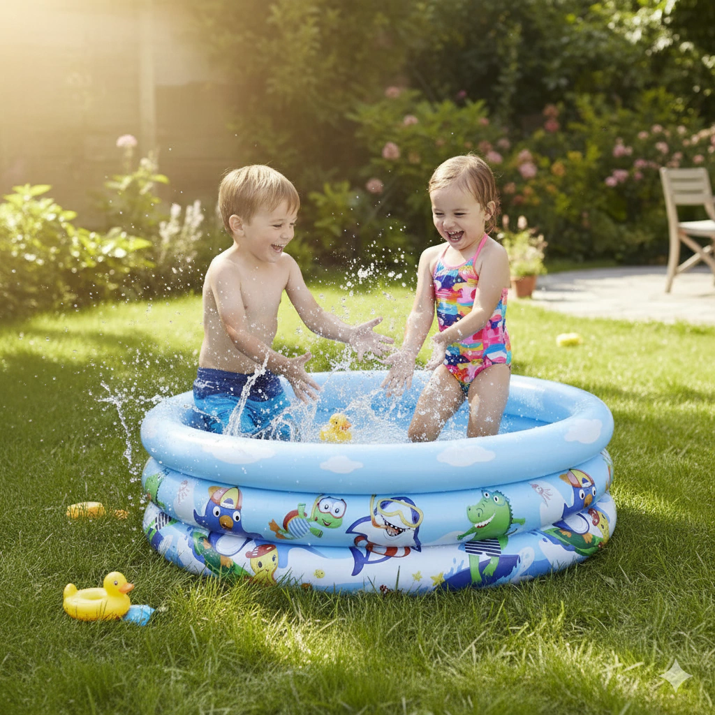 Disfrutá del verano con la Pileta Inflable Infantil de 100x30 cm con diseño de animales. Ideal para niños de 2 a 6 años, tiene 3 aros, capacidad de 148 litros y está fabricada en resistente PVC. Fácil de inflar y guardar, viene en bolsa para un cómodo traslado. Perfecta para refrescarse y jugar al aire libre.