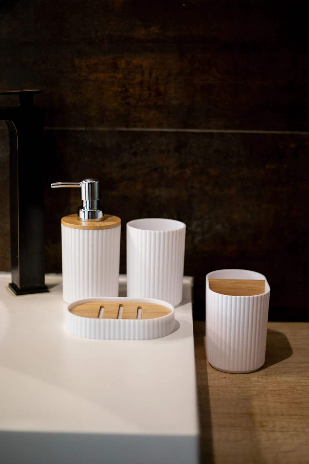 Dispensador de jabón, vaso y jabonera