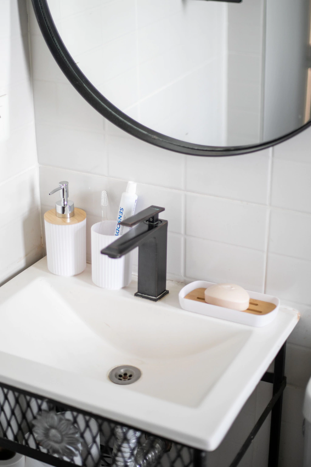 Dispensador de jabón, 1 vaso y 1 plato de apoye
