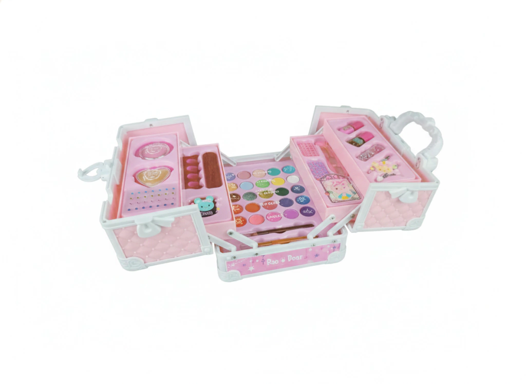 La valijita profesional de maquillaje para niñas incluye sombras multicolor, rubores, brillos labiales, esmaltes y accesorios. Su formato tipo maletín es práctico y resistente, ideal para transportar y guardar todo en un solo lugar. Con diseño rosa estilo princesa y compartimentos desplegables, permite jugar, crear y dejar volar la imaginación. Perfecta para regalar y fomentar el juego creativo.