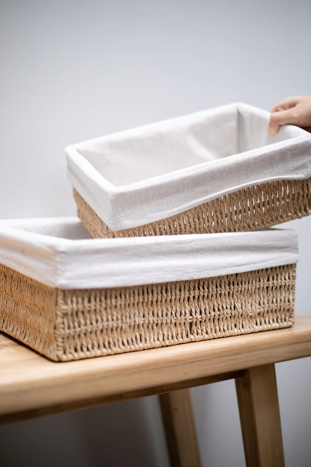 El pack viene por 3 unidades de canastos rectangulares de distinta medida. Viene con tela adentro.
