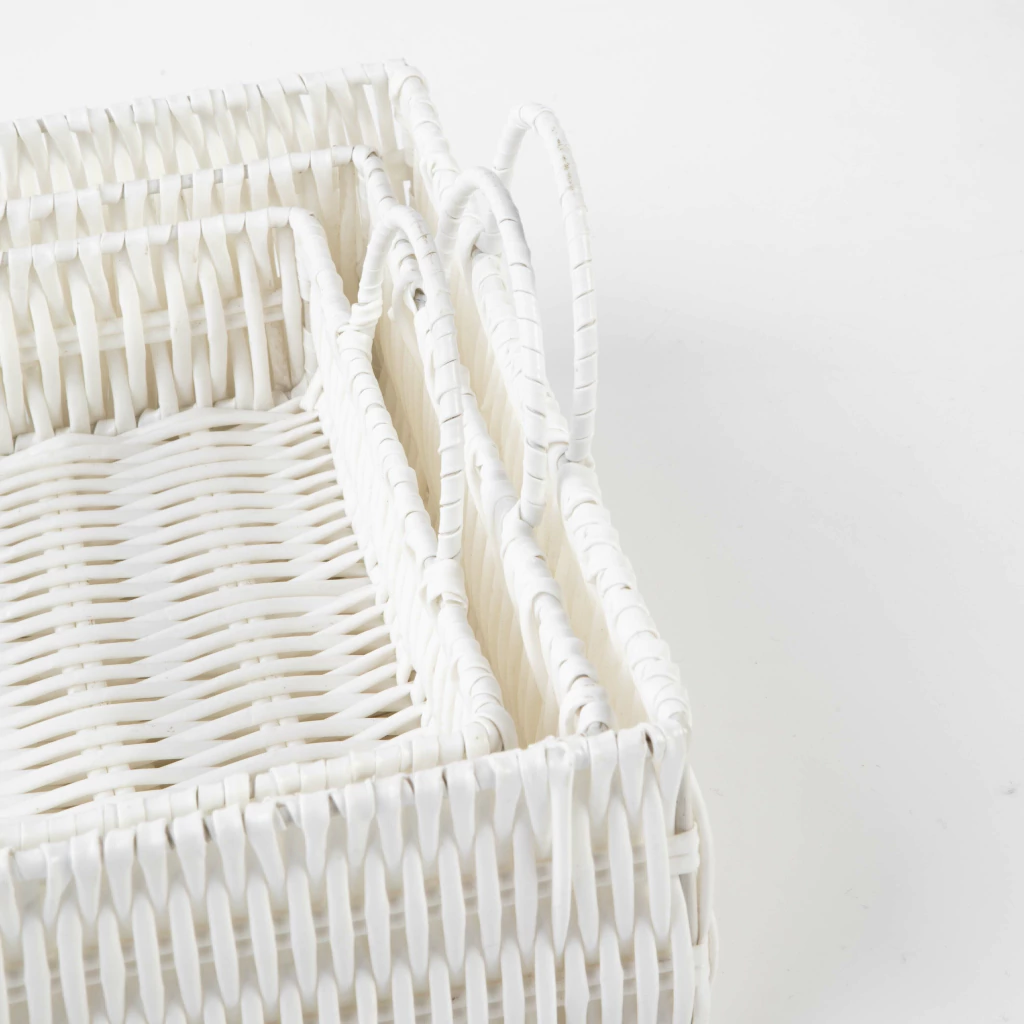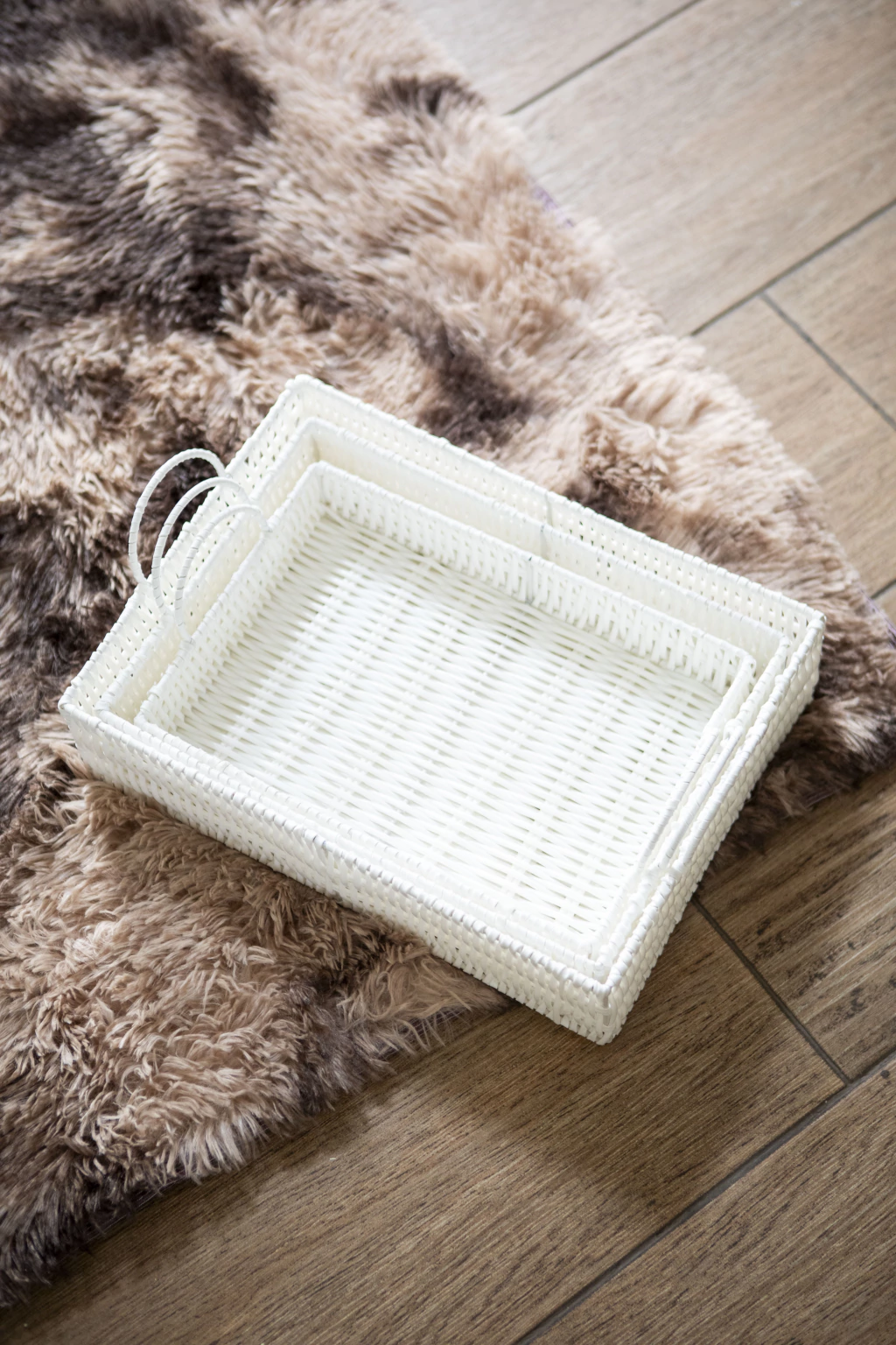 ¡Hermosas bandejas de mimbre X3 unidades de distinto tamaño!! El pack viene por 3 unidades de bandejas cuadradas de distinta medida. Viene con manijas. Color blanco. Medidas: