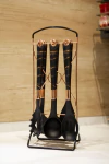 Hermoso mini set profesional de utensilios de cocina. Fabricados en silicona que proporciona un mejor agarre. Contiene tres espátulas diferentes, un batidor y un pincel Características: - Material: Silicona - Piezas: 6 - Colores: Negro y Blanco Viene en caja