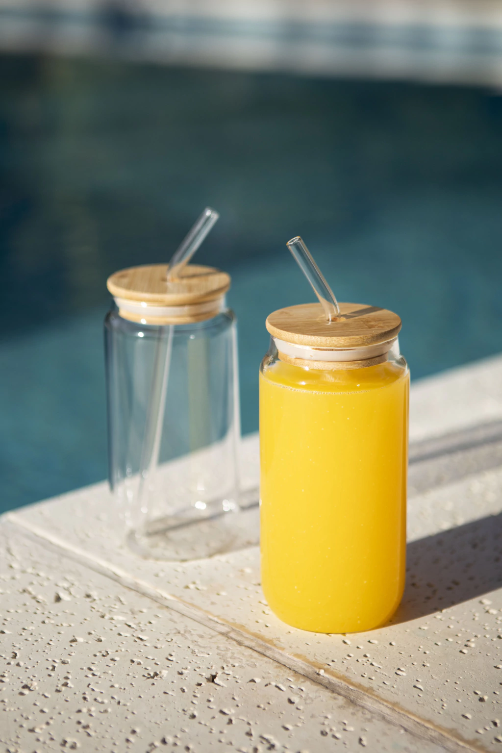 Vaso c/tapa Madera y Sorbete - 2 medidas