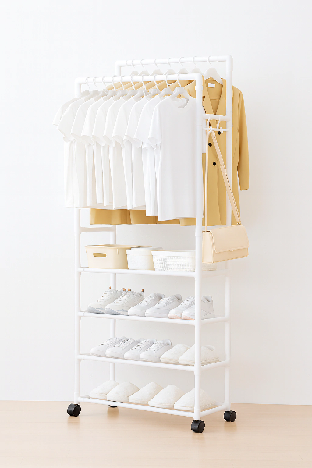 Gran perchero y zapatero movible con doble con filas y capacidad doble