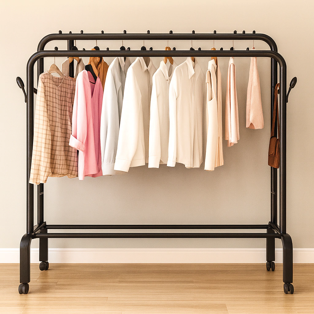Perchero doble barral fijo con ganchos